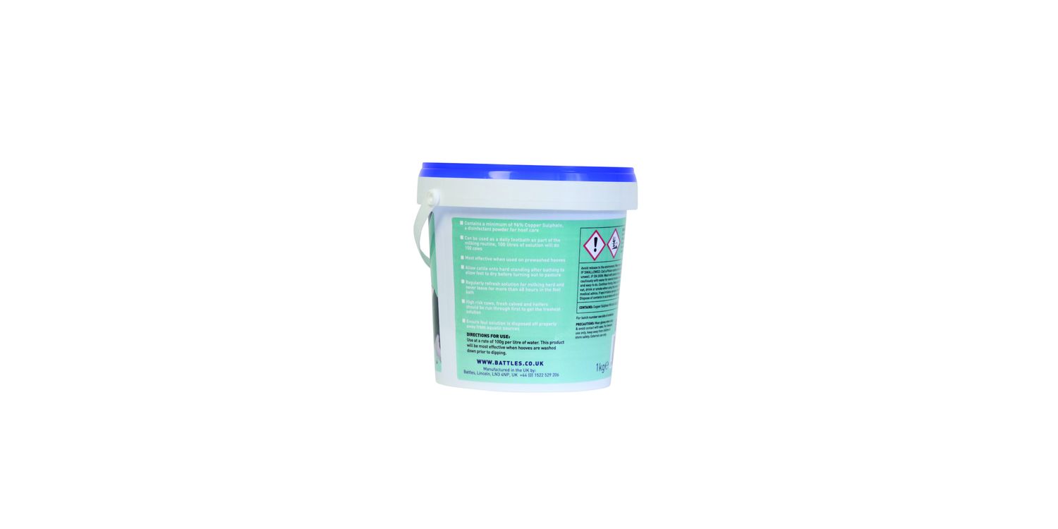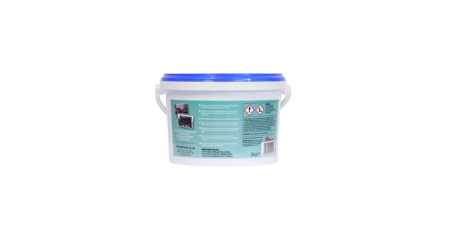 Battles Copper Sulphate has a variety of veterinary, equine and agricultural uses. Whether you're managing plant health, correcting copper deficiencies or improving animal growth, this versatile product is a reliable solution for a range of everyday farming challenges.
