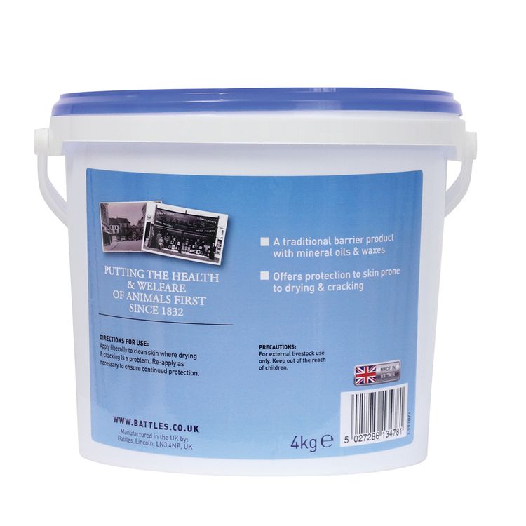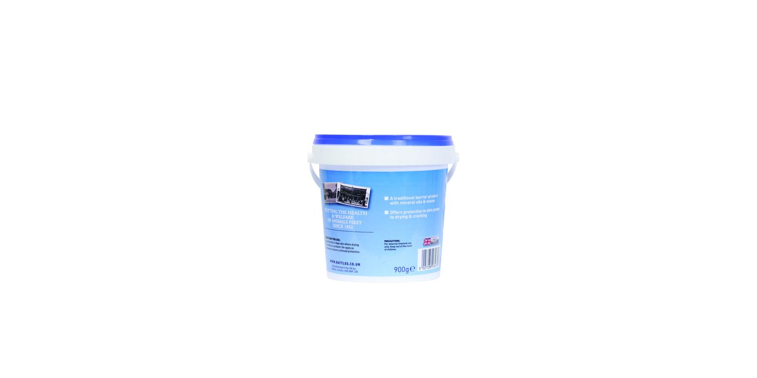 Battles White Petroleum Jelly B.P. is a versatile, veterinary-grade moisturiser ideal for general animal care. Enriched with coconut oil derivatives, it helps soothe and protect dry or cracked skin, while enhancing the shine of white or light-coloured coats. Its gentle formula makes it safe for use around sensitive areas such as eyes and nostrils.