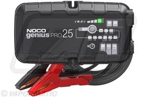 Introducing the all-new GENIUSPRO25, a 6-volt,12-volt, and 24-volt fully-automatic professional smart charger, maintainer, power supply, and battery-desulfator with temperature compensation rated at 25-amps for all types of automotive, marine, and deep-cycle batteries.