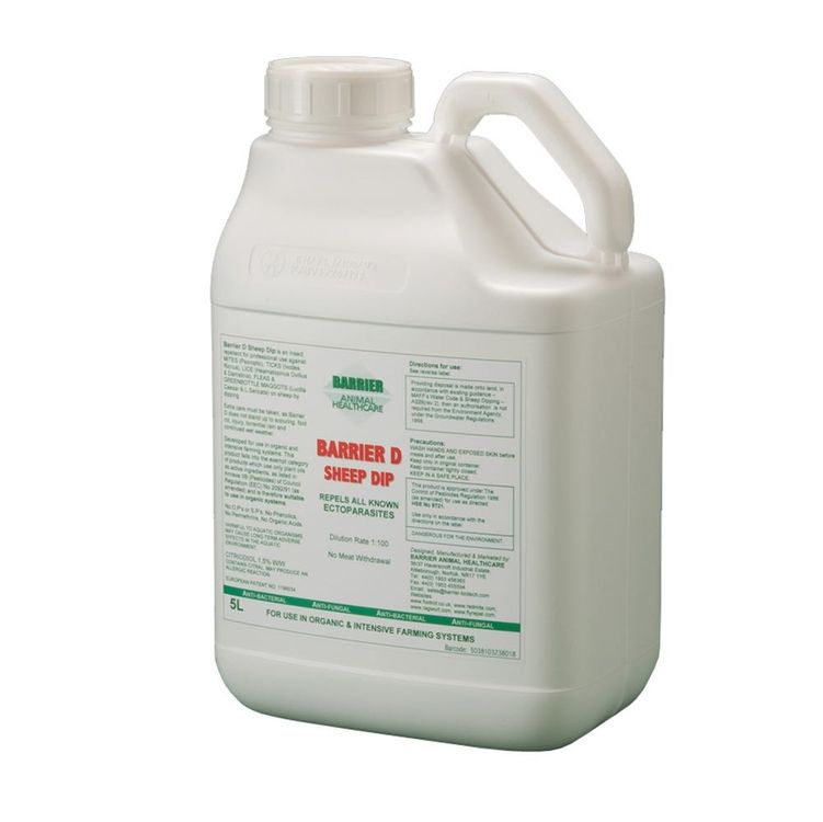 Comprised of purely plant derived ingredients, Barrier D Sheep Dip repels all known ectoparasites for up to six weeks. The spent material can be spread on land with no need for license and this product is suitable for organic farming systems. Barrier Animal Health use 100% natural plant-derived active ingredients, making all products effective and safe for animals and humans!