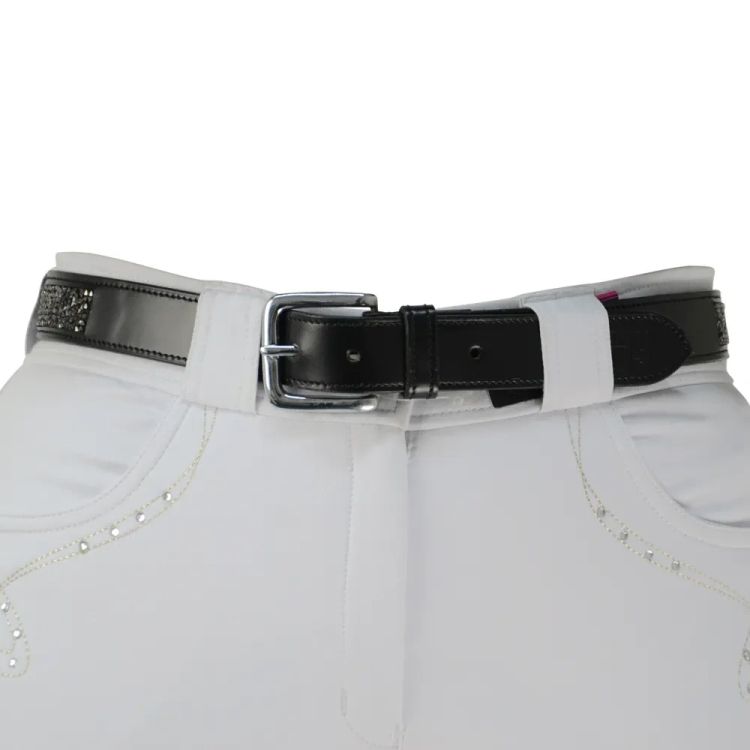 Sparkle with this beautifully designed, supple leather belt with intricate diamante crystals placed in a stunning arrangement. Perfect to glam up any riding or casual attire.