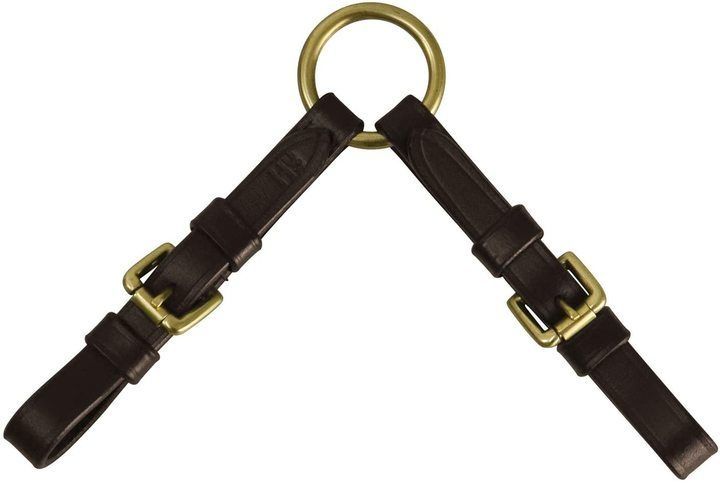 High-quality leather coupling with brass buckles attaches to both bit rings to provide extra control during in-hand classes in the show ring.