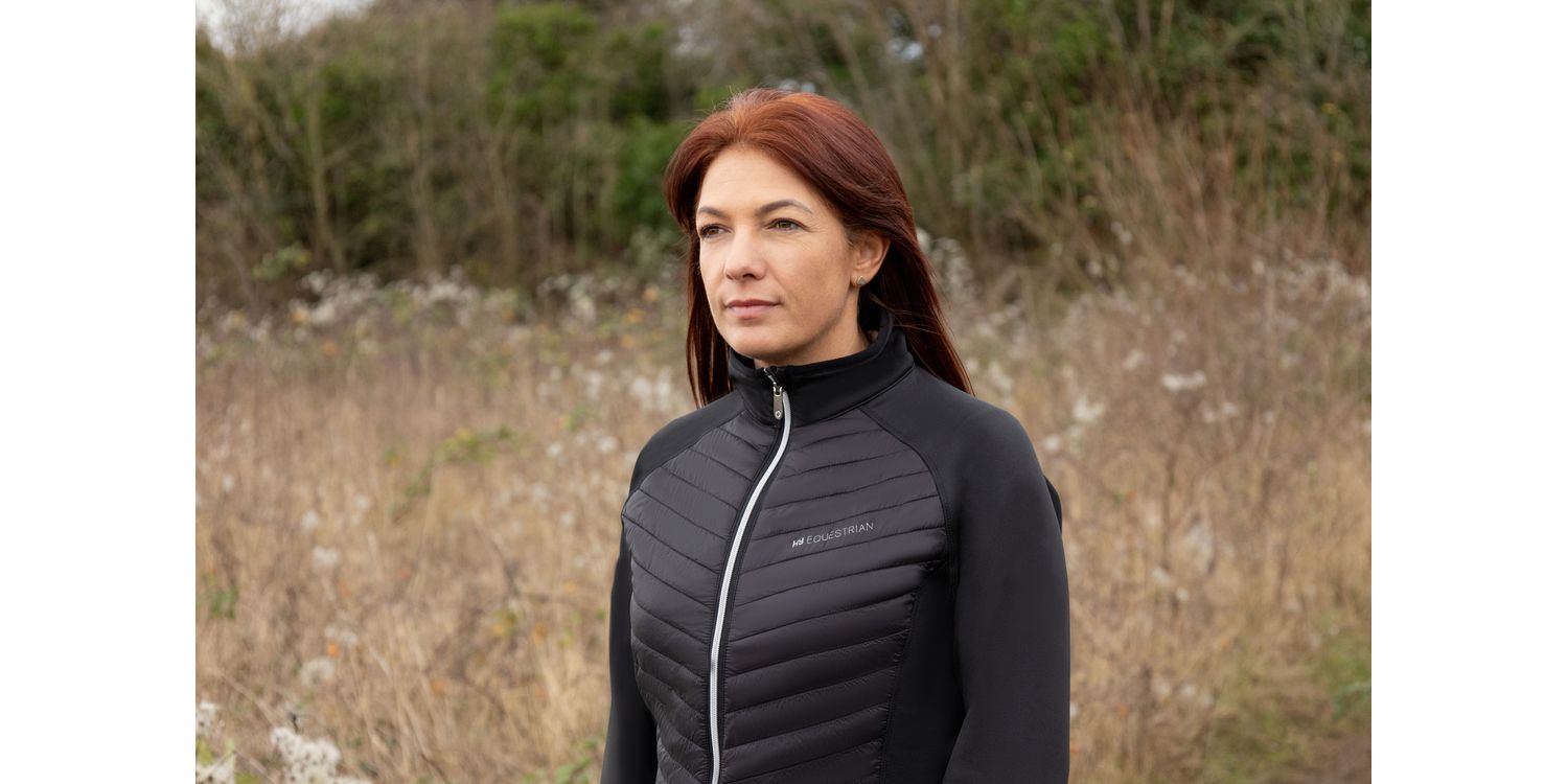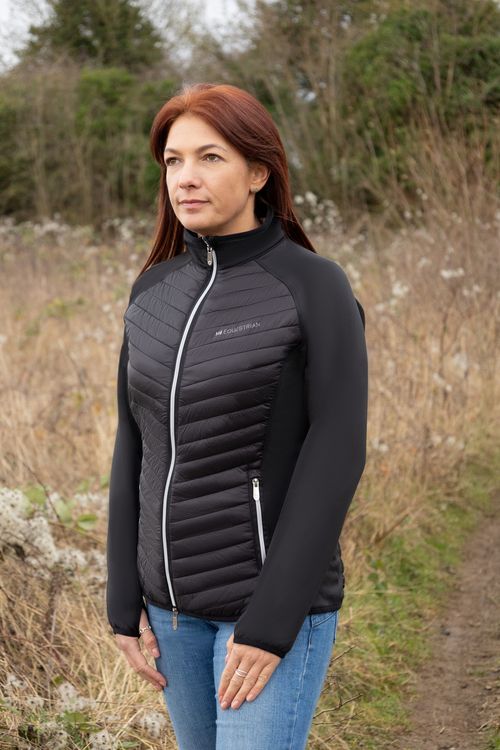 This beautiful gilet is the perfect item to wear as a layer to keep warm. Featuring a striking silver two-way zip and pocket zips for a stylish look. With a quilted front and back for warmth and breathable jersey material on the side panels. The Hy Equestrian logo features to the chest and collar. Match with the rest of the Synergy collection.