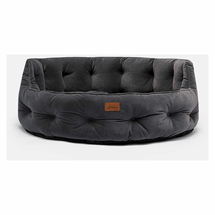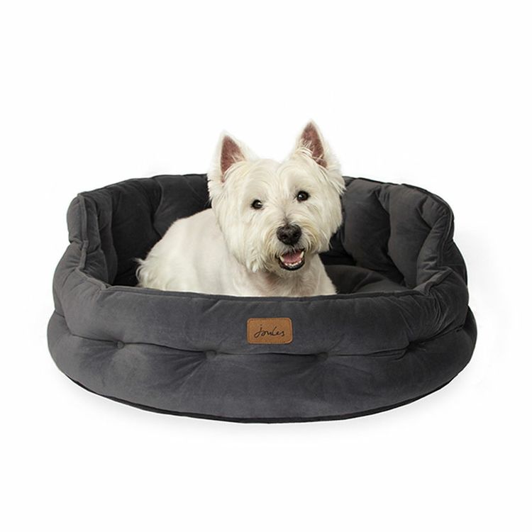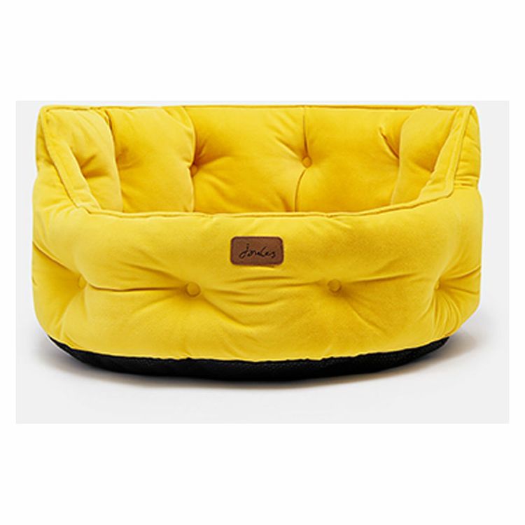 Let sleeping dogs lie in this super cosy iconic Joules velvet chesterfield pet bed. This thick, soft touch velvet bed is inspired by the Joules best selling Windsor sofa. With extra padding this bed is guaranteed to provide a comfortable and warm spot for your pet to rest. Not only stylish, this bed is also practical with a non slip base and is machine washable on a gentle 30 degree cycle. Available in two colours - mustard and grey, and two sizes.