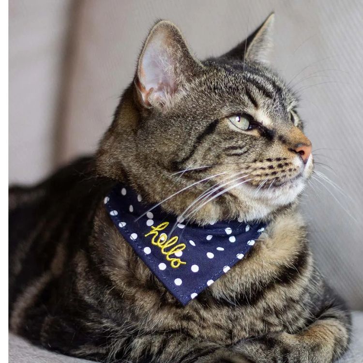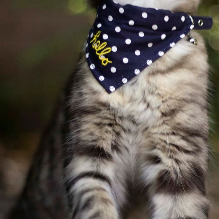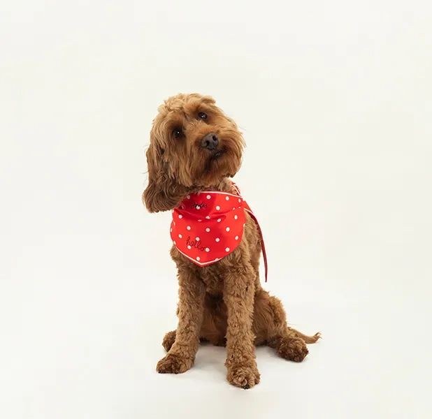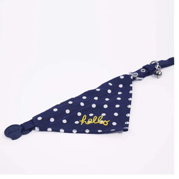 Calling cool cats and stylish-but-small dogs. This natty neckerchief collar is adorned with polka dots and 'hello' embroidery, making sure tongues and tails are sure to wag whenever it's worn. Finished with small touches that could only ever be found at Joules.