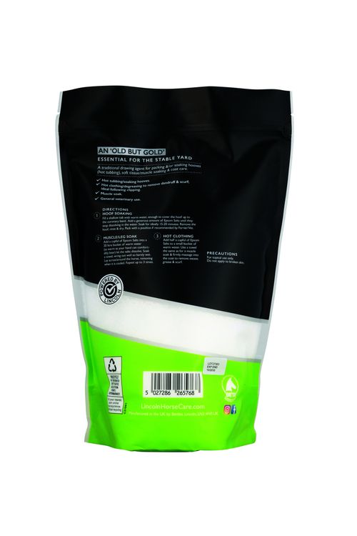 A traditional horse care essential, Magnesium Sulphate is generally used as a drawing agent. It can be used for a multitude of external applications including soaking hooves (hot tubbing), soothing muscle soak, degreasing the coat and for general veterinary use.