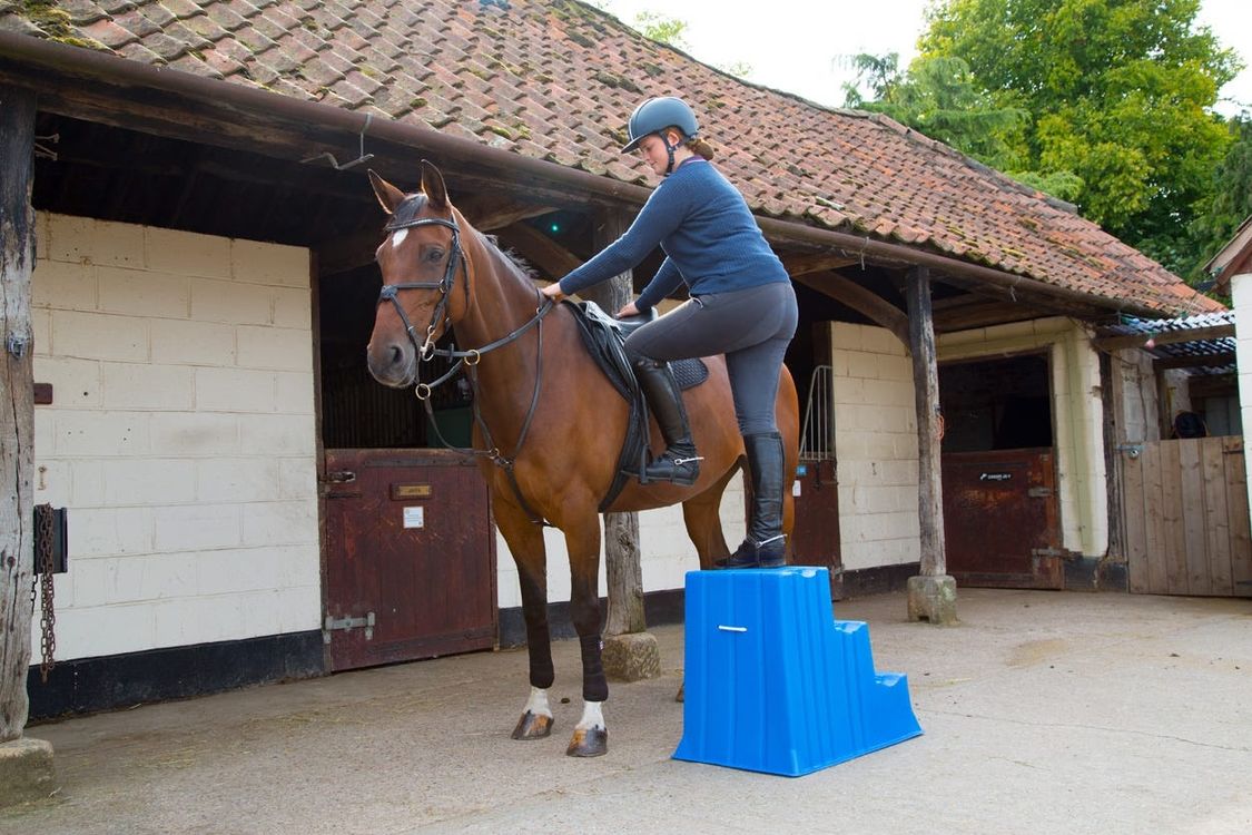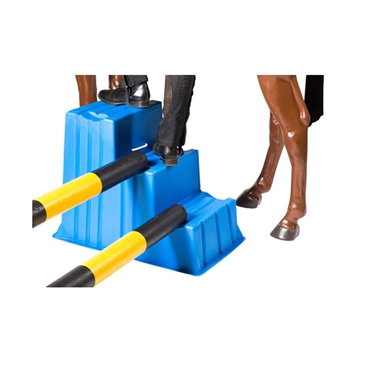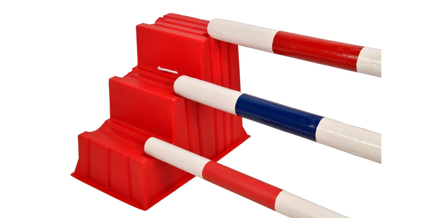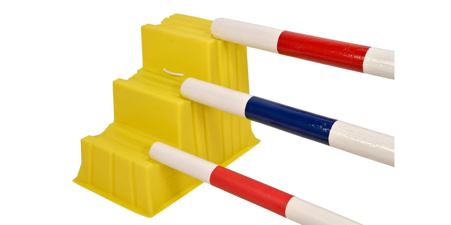 Combined mounting block and pole block - what a masterful design with a real practical appeal. Based on our most successful 2 step Mountie (S521), this 3 step version is perfect for getting on the larger horse and also schooling when you are on your own. Shallow cups moulded into both sides of all three steps allow creation of a training triple jump. Usual simple rope handle on both sides for easy, lightweight handling. Simple to nest, it also has a slip resistant surface. Stubbythene super tough moulding, available in 4 colours. The Stubbs logo is moulded in for consumer confidence