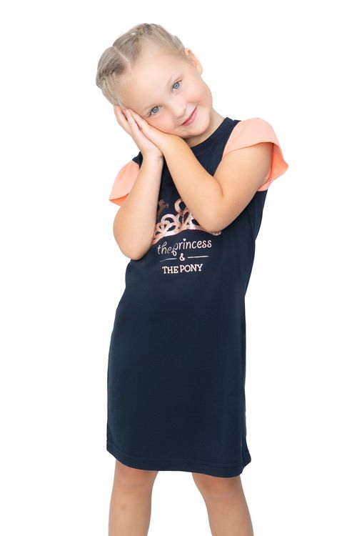 Sleep in style in the adorable new Princess and the Pony Nighty. Featuring the collection's slogan in pretty rose gold foil and sequins. This navy nighty is finished with peach frill sleeves for an adorable look. Matches the rest of the collection perfectly - perfect for any pony loving princess!