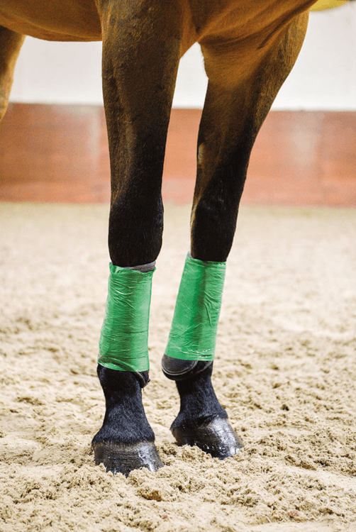 Multi- purpose film wrap ideal for a wide variety of uses from poulticing ,waterproofing bandages,sweating legs, securing ice packs, wrapping tails (over the tail bandage) or travelling. Also great for general quick fix stable yard repairs and much more.Sticks to itself and not to the horse, leaves no adhesive residue. Easy to remove. Waterproof and lightweight.Thicker and stronger than conventional film wraps,Tearable - no scissors required. Size 100mm x 50mMade in Europe. Fully recyclable.