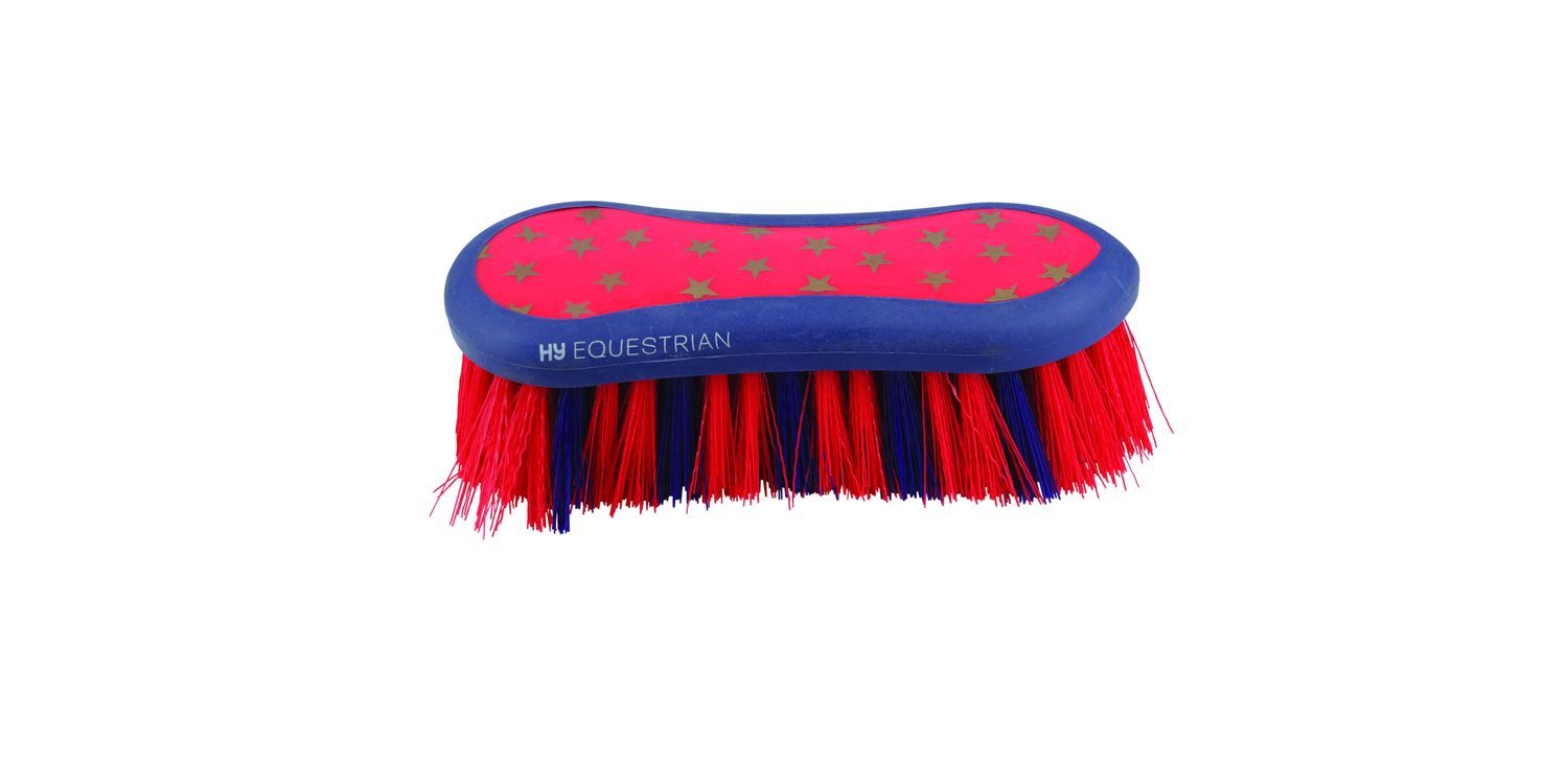 Easy grip dandy brush with stiff PP bristles. Gold star printing on the back.