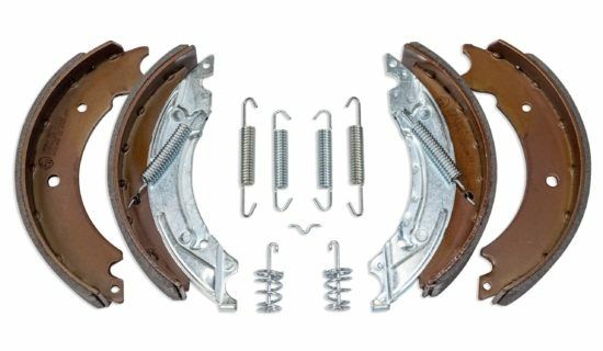 Type approved kit contains two fixed and two sliding brake shoes, auto-reverse sliding shoe carrier and all springs required. It is recommended that brake shoe kits are fitted in axle sets.