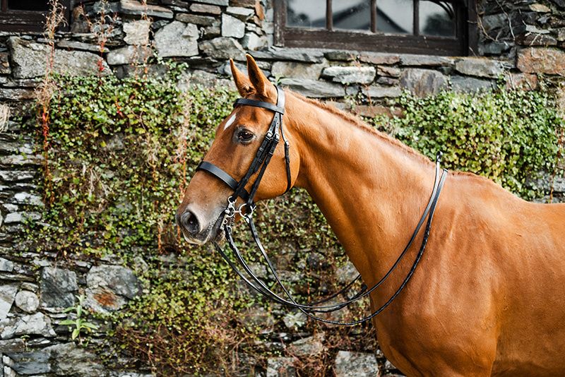The Mackey Classic Double bridle has the highest quality leather, stainless steel fitting and carefully handcrafted. Featuring a flat cavasson noseband and browband for a traditional look, ideal for the show ring. Comes with laced snaffle rein and curb rein. Cheek pieces 5/8"