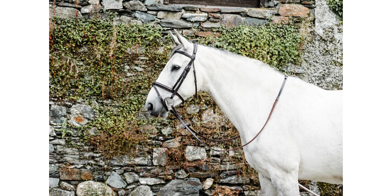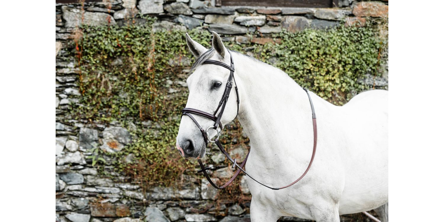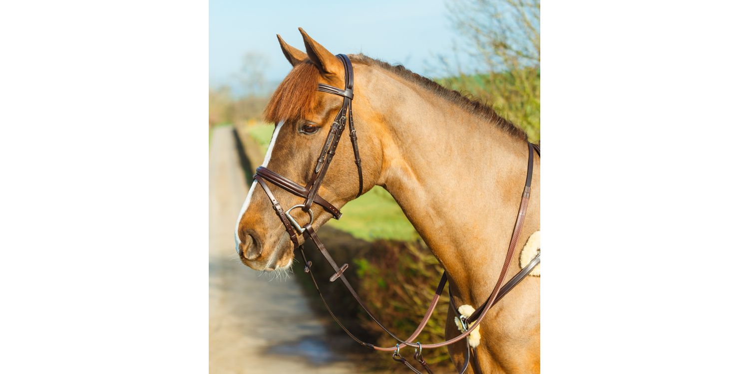 The Mackey Classic Flash Bridle has been handcrafted using the highest quality leather and stainless steel fittings. Featuring a padded noseband, browband and headpiece for extra improved comfort. Comes complete with rubber grip reins. Cheeks & reins with billet ends for a neater finish. Classic Flash cheek pieces 5/8"