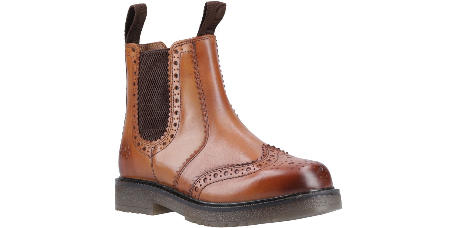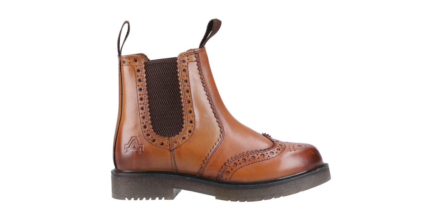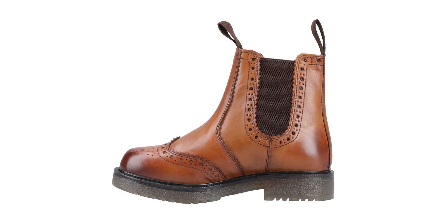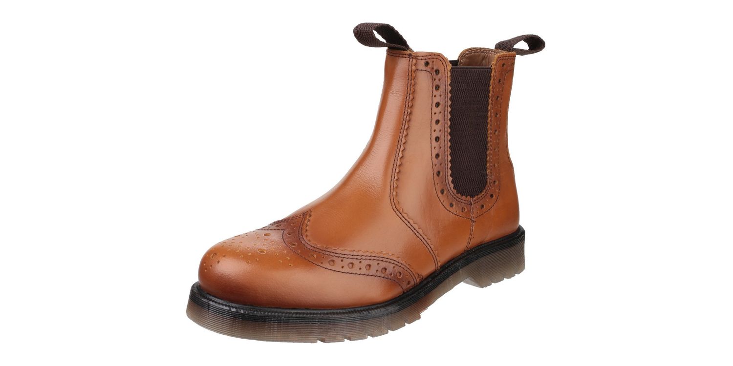 Hardwearing semi-formal pull on brogue dealer boot, perfect for casual wear any time of day. Matte leather upper gives it a stylish look with a wing-tip trim, whilst a textile lining and cushioned PVC sole adds comfort.