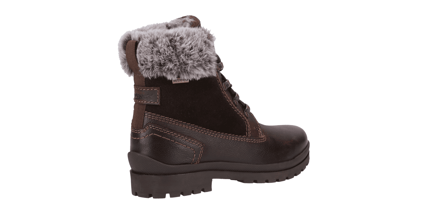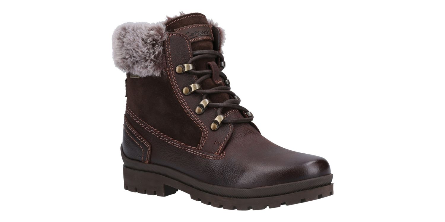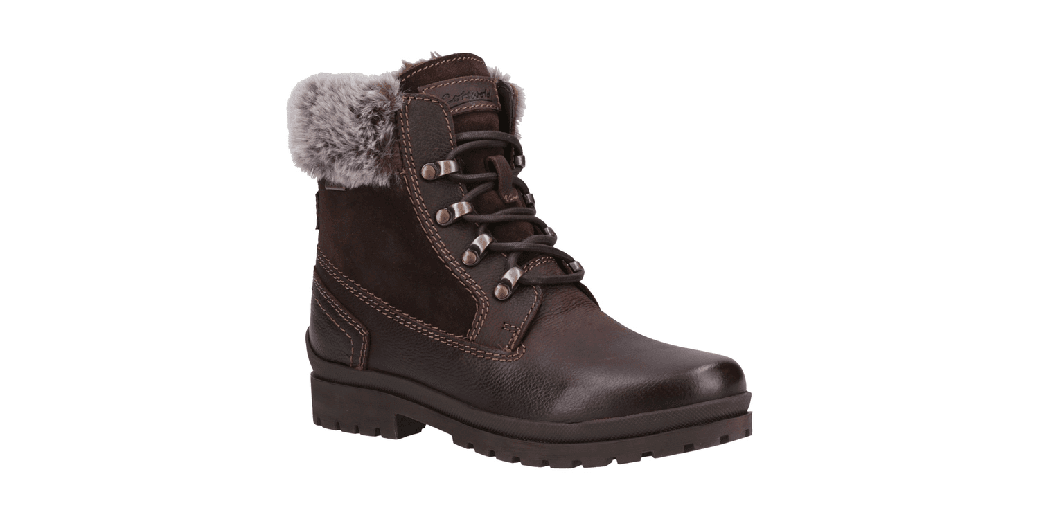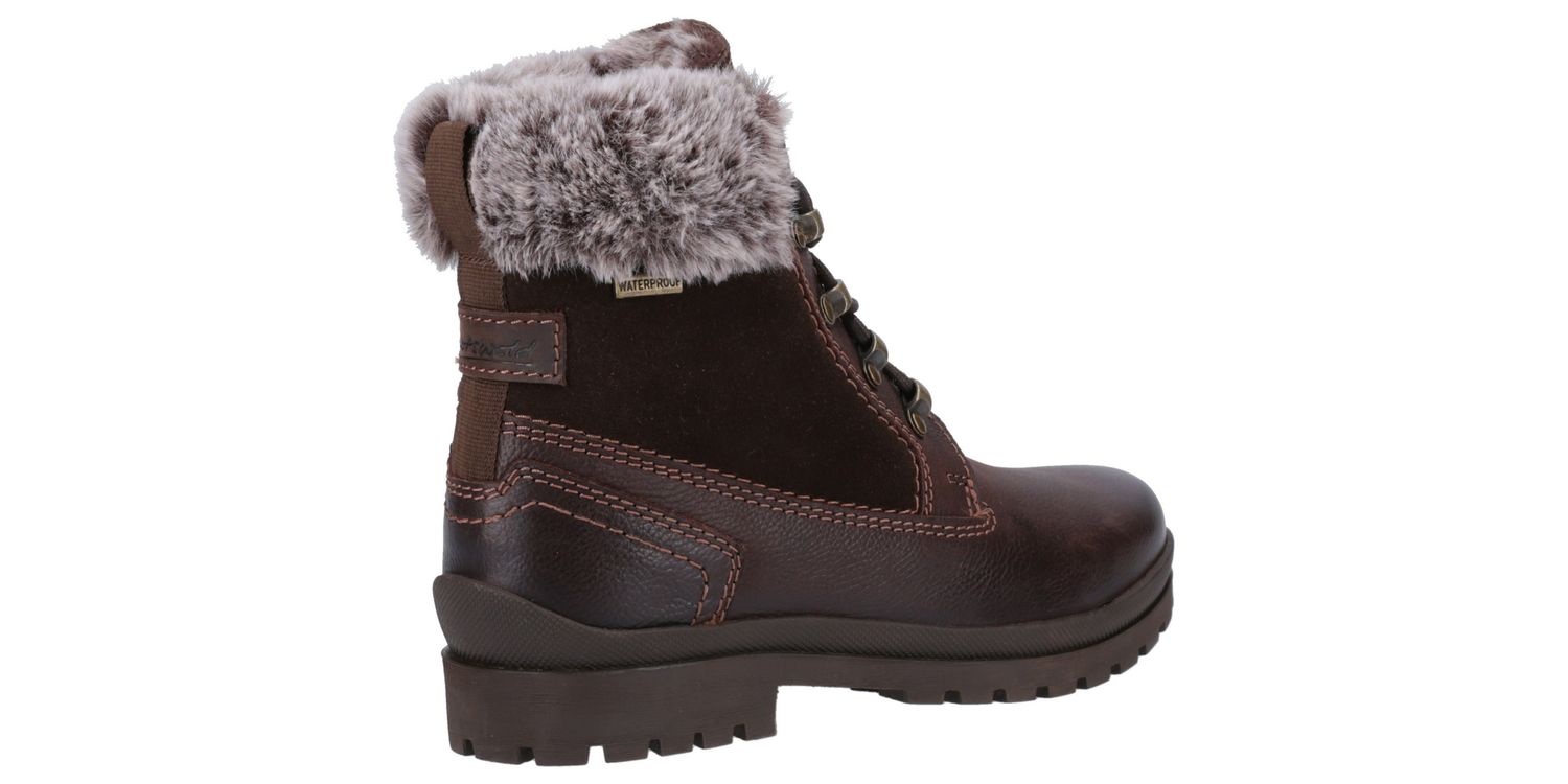 Say hello to your winter best friend, Evenlode Ankle Boot. With cool biker boot styling and chunky lace up detailing. Featuring luxury faux fur cuffs and also lining your feet will be toasty warm. Finished with waterproof uppers and suede panels