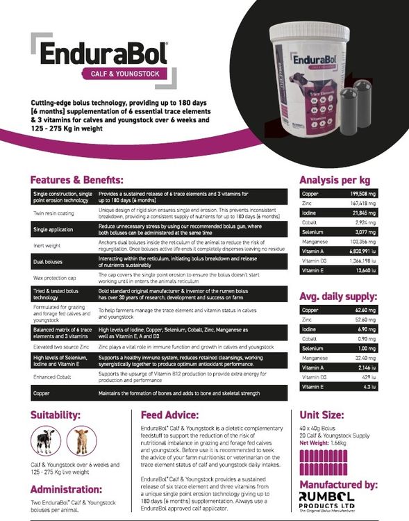 Endurabol Calf & Youngstock - 40 Bolus Pack additional 1Endurabol Calf & Youngstock - 40 Bolus Pack additional 2