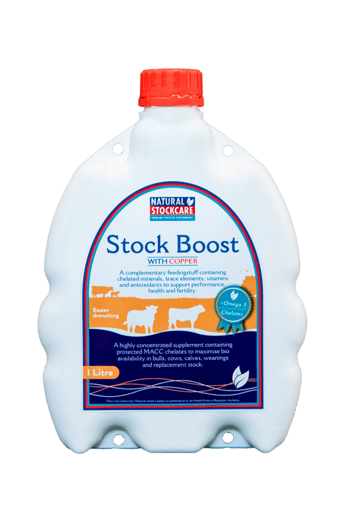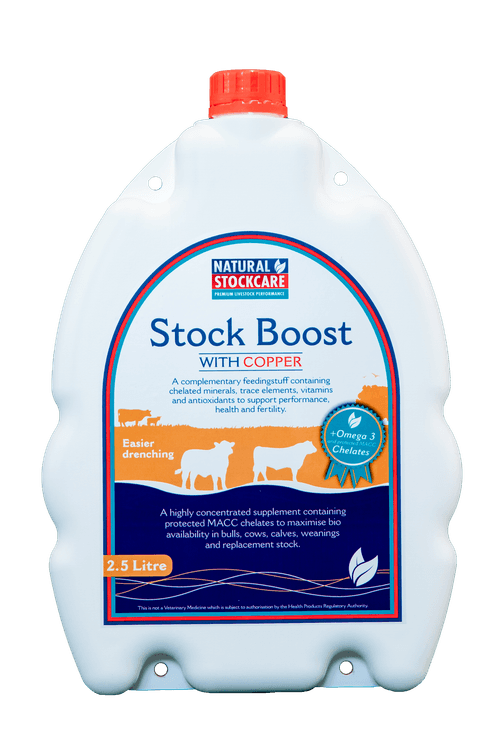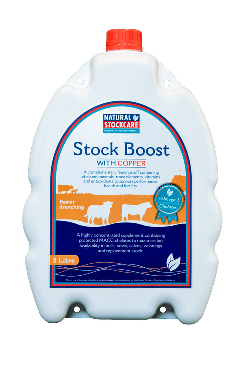 Natural Stockcare Stock Boost is a high-quality nutritional supplement designed to enhance the health, growth and fertility of young livestock. Packed with chelated minerals, essential trace elements, vitamins and antioxidants, it provides targeted support to calves, weanlings and replacement stock during key stages of development.