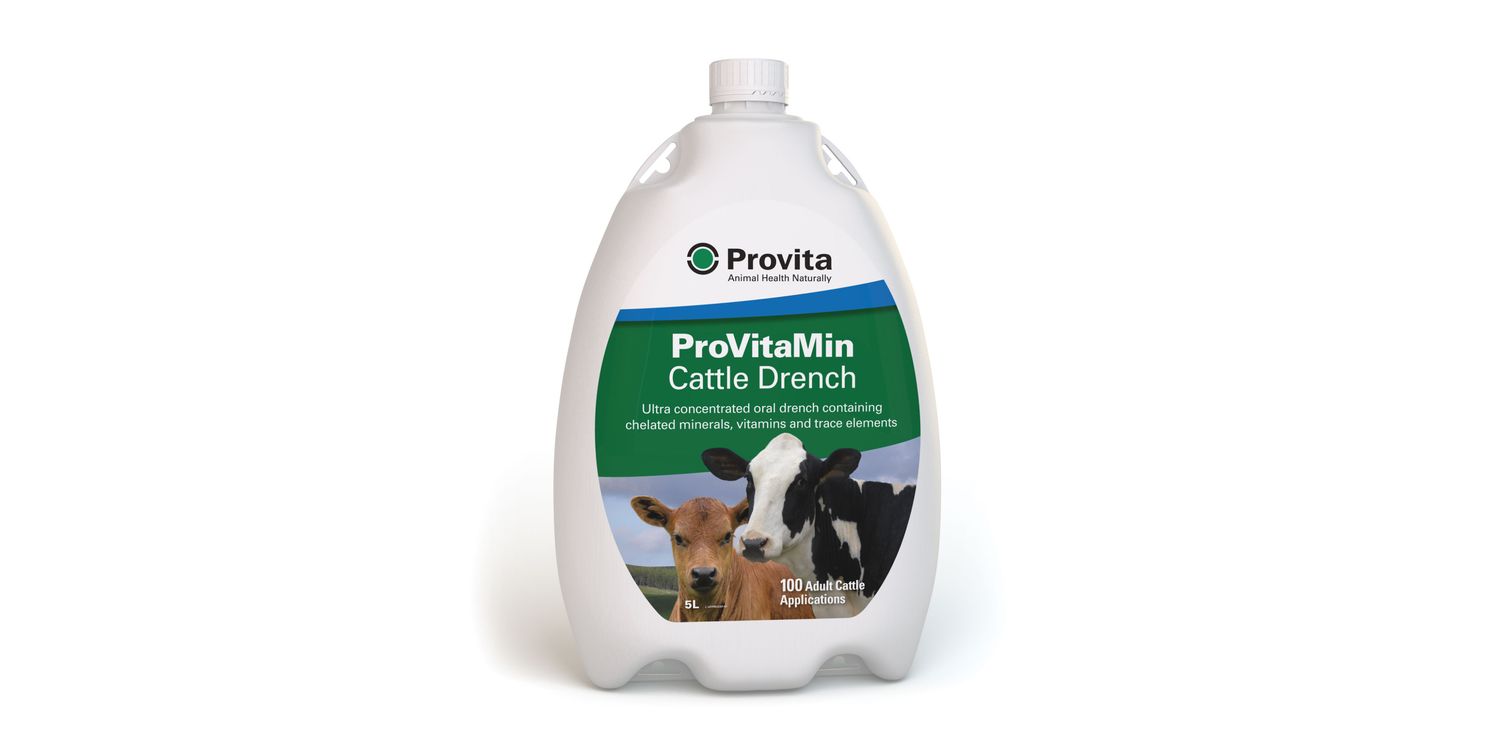 ProVitaMin is an ultra-concentrated oral drench containing 26 broad spectrum elements providing all the essential chelated minerals, vitamins and trace elements. Particularly useful for cows pre-calving, cows pre-serving, flushing, calves and beef cattle. Designed to improve fertility, growth performance and thriftiness in cattle.