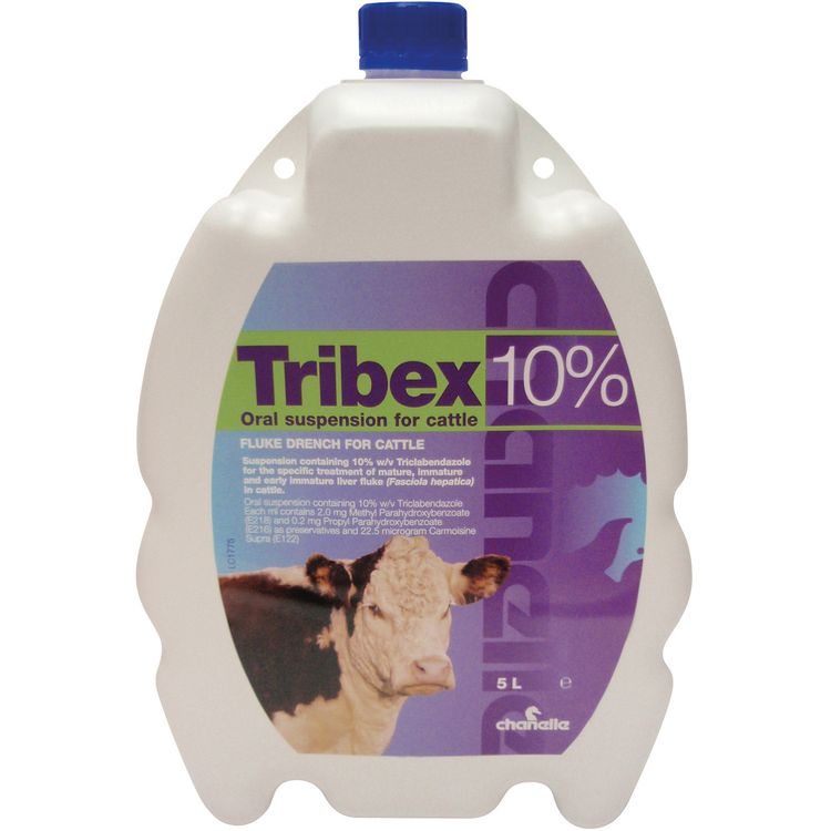 Indicated for the treatment of acute, sub-acute and chronic fascioliasis in cattle caused by early immature, immature and adult stages of liver fluke (fasciola hepatica) susceptible to triclabendazole. Pink coloured uniform suspension which resuspends easily on shaking. Each ml contains 100mg triclabendazole. Legal Category: POM-VPS.
