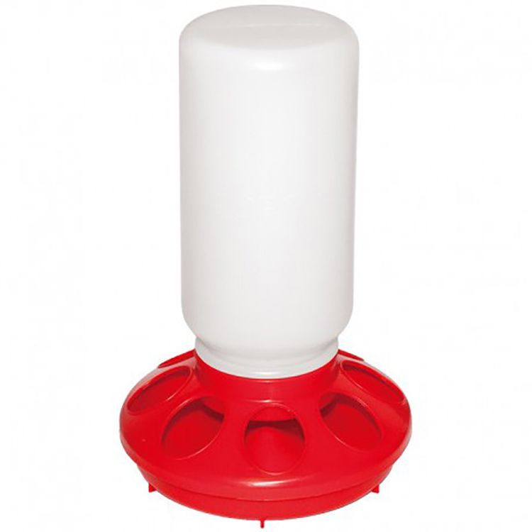 Feeder for partridges and chicks, with translucent plastic deposit that allows to check the level of food, the union of the dish to the tank is done by screwing preventing it from detaching. The plate is removable for easy filling and designed to avoid wasting food.