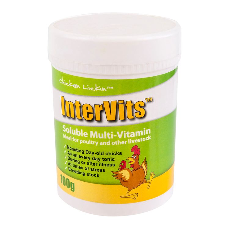 Chicken Lickin Intervits Soluble Multivits are designed for daily use, particularly for periods following illness or when your birds are under stress.