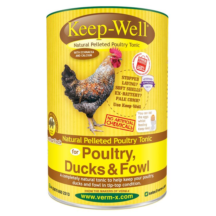 Verm-X Keep-Well Natural Pelleted Poultry Tonic is a 100% natural supplement designed to support the overall health and vitality of poultry, ducks and fowl. Its easy-to-feed pelleted form delivers a balanced blend of herbs, vitamins and minerals to promote wellbeing and productivity without the use of artificial chemicals.