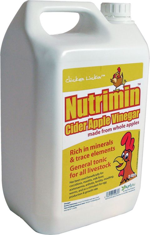 Providing beneficial results for all livestock and poultry, Tusk AgriVite Nutrimin Cider Apple Vinegar is totally natural, organic and antibacterial.
