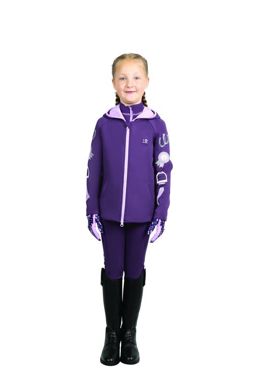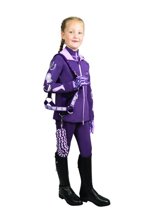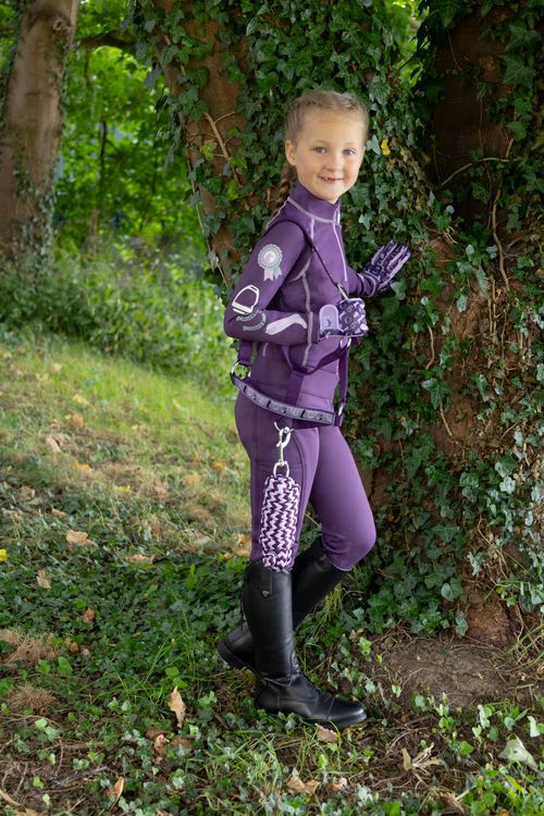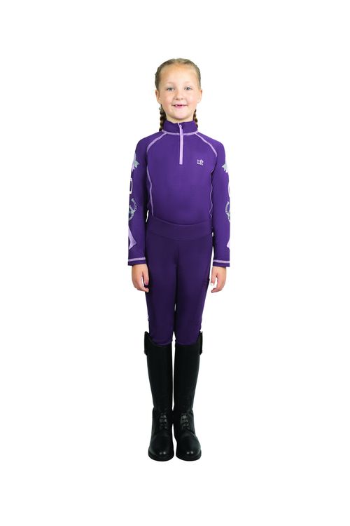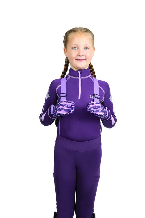 This fantastic base layer is part of the Giddy Up Gymkhana range by Little Rider. Made from a four-way stretch, breathable material making this ideal for fun days in the saddle! Featuring equestrian themed pattern down each sleeve to add some fun to your outfit and match the rest of the collection perfectly. With ¾ zip for ease of dressing and contrast stitching and Little Rider emblem to the chest for that finishing touch. Ideal to wear alone or as a layer when required.