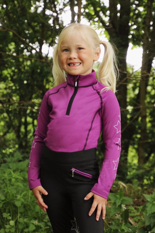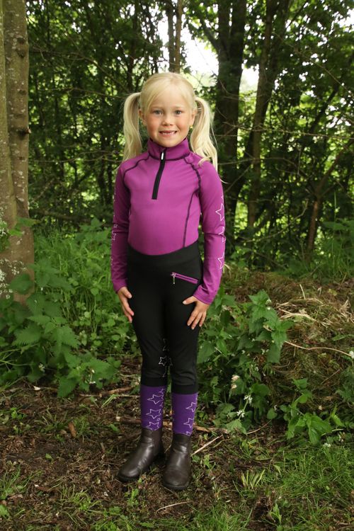 This new, funky base layer by Hy Equestrian is a must-have for all youngsters who love riding! This design with coloured stars matches the riding tights and hat cover perfectly for a fun, stylish, matchy-matchy look for any young rider! Made with polyester and spandex, this base layer is comfortable and allows for ease of movement when enjoying those moments in the saddle.