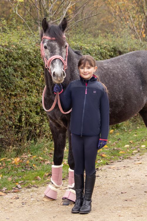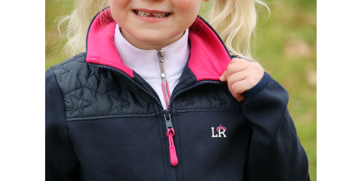 Soft, snug and smart, the Sophia Jacket is the perfect addition to your child’s wardrobe. The fleece jacket with star quilted shoulders and sides ensures optimum warmth in those colder months when it is needed most. Featuring a stand up collar to protect necks from the elements and two-way zip for practicality whilst in the saddle. Finished with pink detailing and Little Rider emblem on the chest.