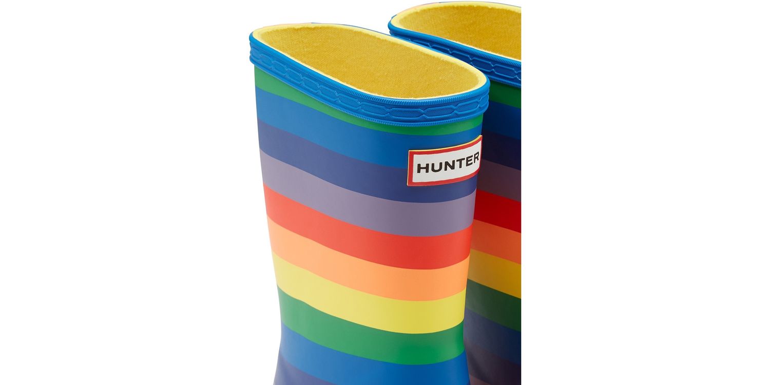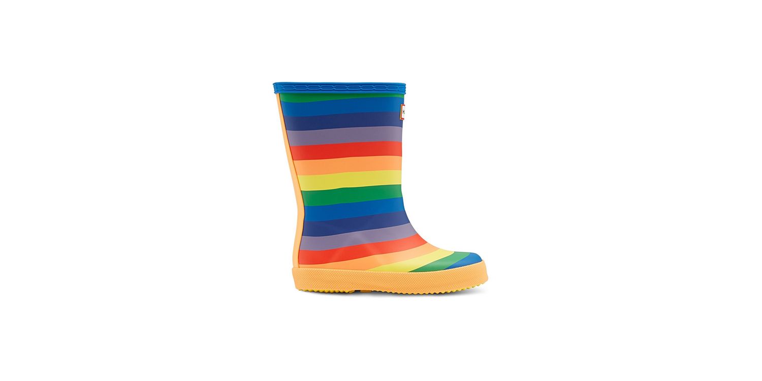 Featuring a vibrant and fun rainbow design, this kids boot is perfect for puddle splashing. Handcrafted from natural rubber, a flat sole and rounded toe gives little feet room to move and the soft recycled polyester lining ensures complete comfort.