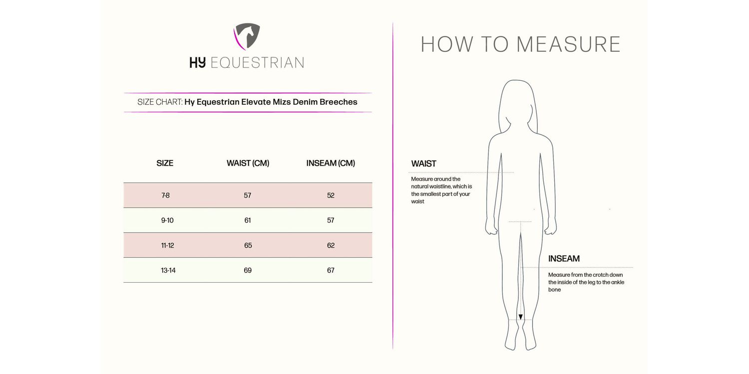 Create a relaxed and stylish look with the Elevate Denim Breeches. Made from a soft denim stretch fabric, these breeches move with every movement and will sit perfectly for a flattering shape. With front and rear pockets for practicality and tapered lower leg for a contoured fit. The full silicone seat increases grip when in the saddle, whilst the tonal finish allows for these to be worn for more casual events. Fastened with durable Hy Equestrian gutos on a secure waistband with belt loops - accessorise your look with a belt to complete the look.