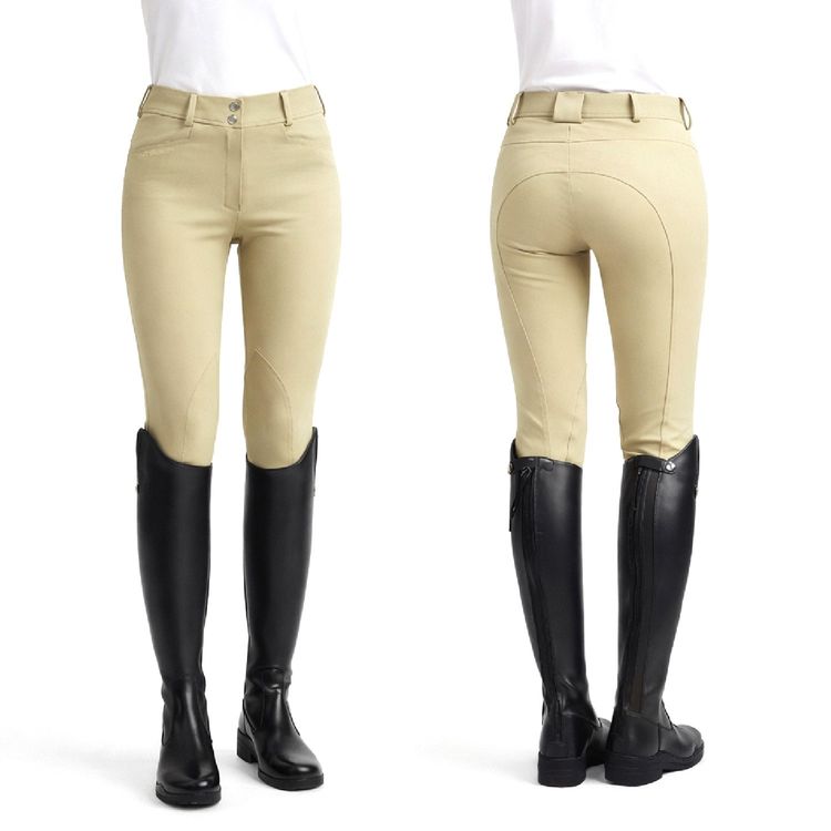 Classically styled and comfortable, these four-way stretch breeches are suitable for everyday use yet smart enough for competition use. The self fabric knee patches are perfect for those who'd prefer to not feel stuck to their saddle and won't get stuck together when walking. Featuring open front jean style pockets, seat seam for comfort in the saddle, a subtle elastic ankle for a streamlined look and a comfortable mid-rise waistband with belt loops and Whitaker hook and eye fastenings.