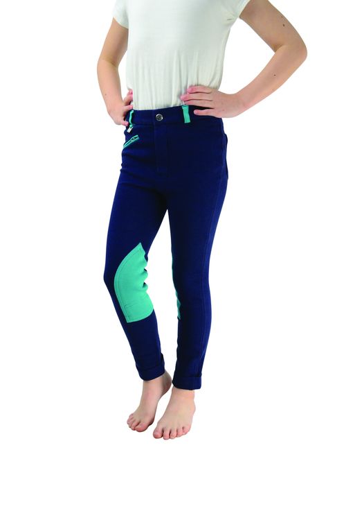 A durable, practical, everyday Jodhpur that is fashionable and flattering. Contrast knee patches and belt loops and the Hy Equestrian logo on the back pocket. Machine washable. Leg length: Regular.