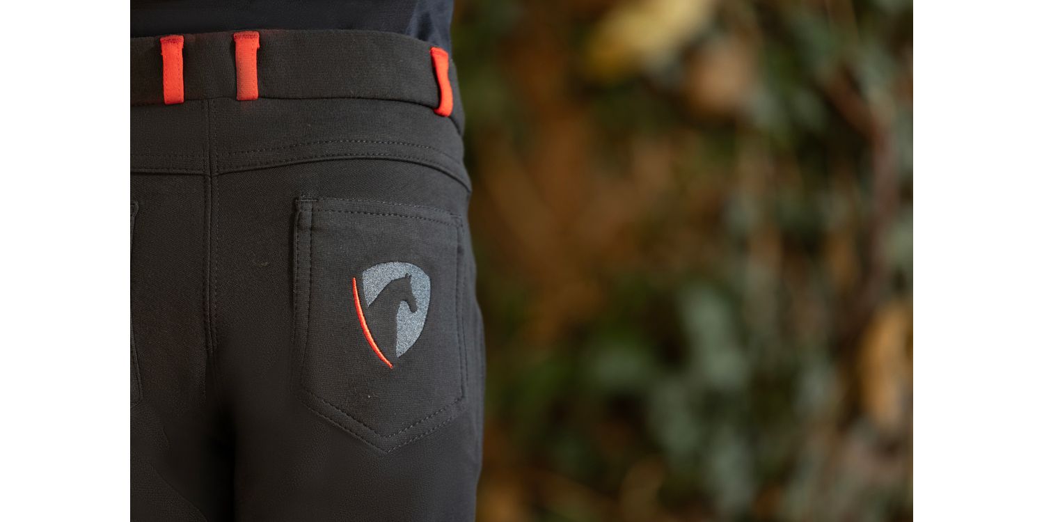 A durable, practical, everyday Jodhpur that is fashionable and flattering. Contrast knee patches and belt loops and the Hy Equestrian logo on the back pocket. Machine washable. Leg length: Regular.