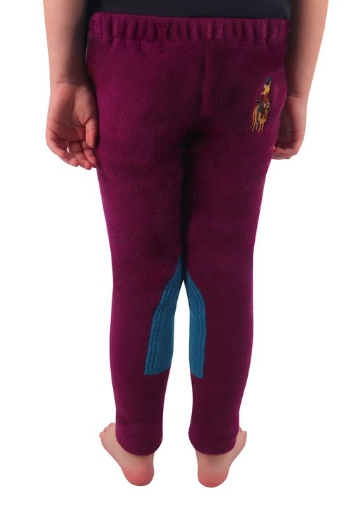 Keep your little ones warm this winter! These fun and practical imperial purple fleece tots jodhpurs are hard wearing, comfortable and warm. The pull-on design makes for quick and easy dressing and undressing. Featuring pacific blue knee patches, Thelwell logo and Thelwell character to match the rest of the collection. Machine washable.