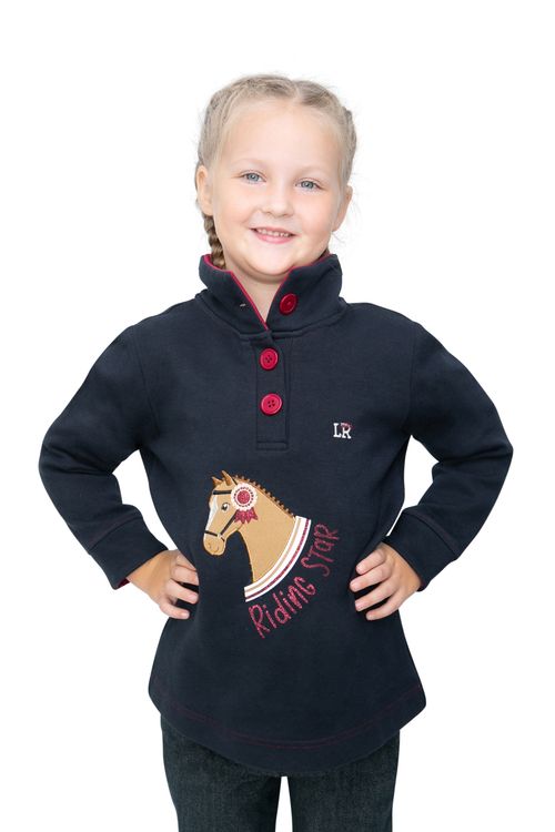 Ideal for cooler days or chilly evenings, this cosy jumper features a stunning textured appliqué horse head with rosette to the front for a super standout look! Featuring star elbow patches for a stylish finish and a burgundy button up collar, allowing it to be put on and taken off easily. The soft and snug burgundy lining makes this the perfect layer. Pair with the rest of the Riding Star collection for a fully coordinated look.