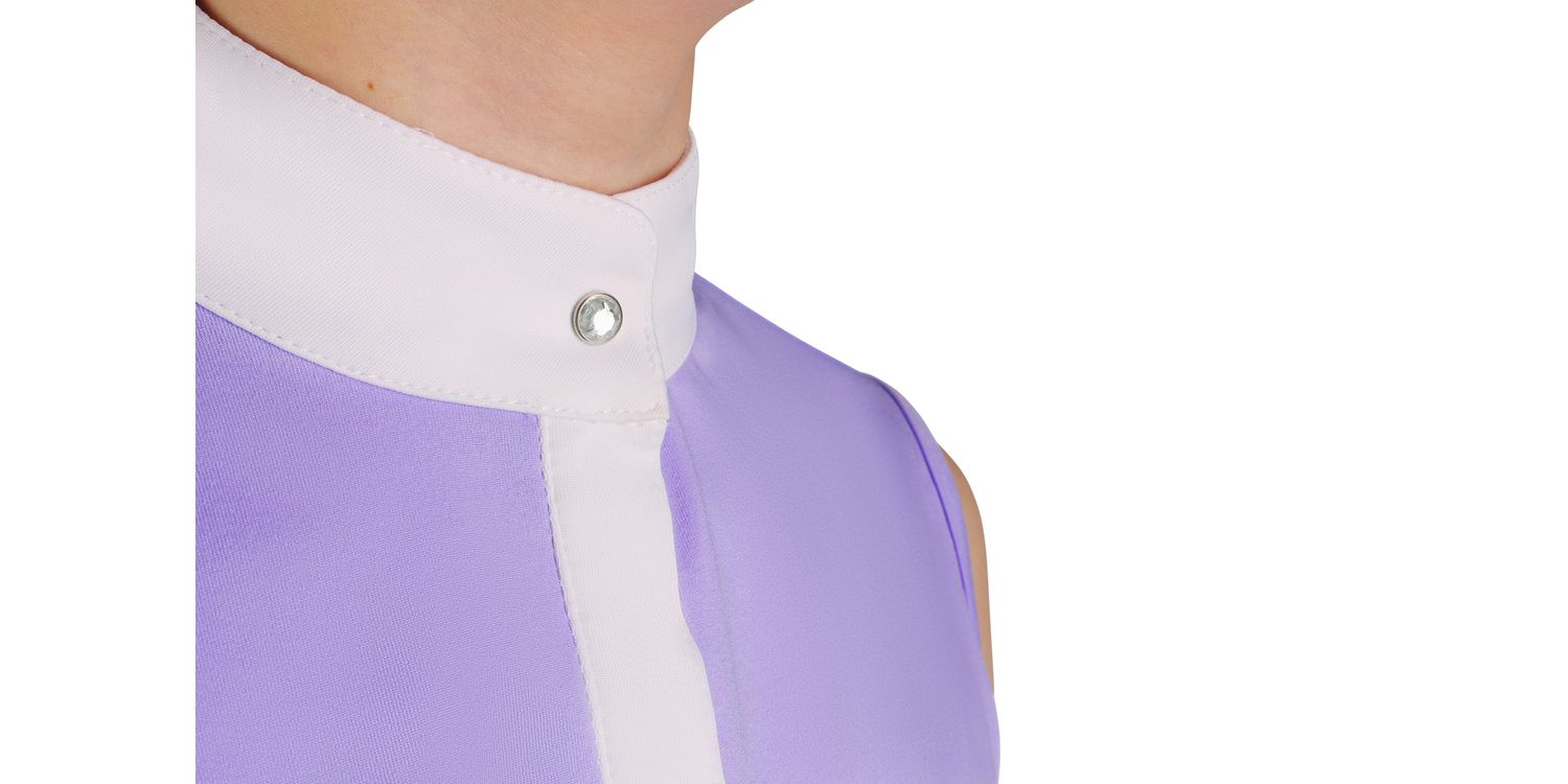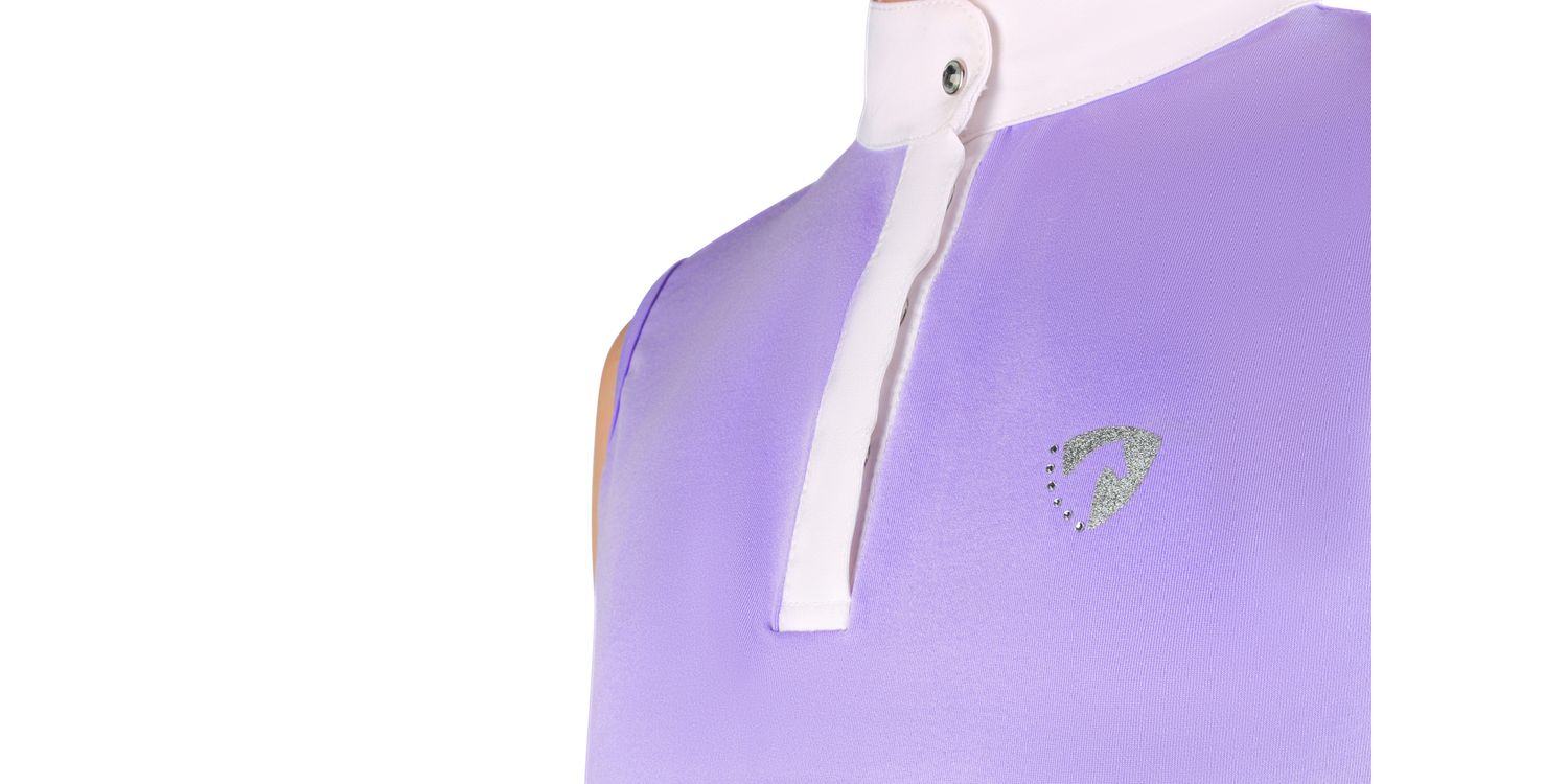 Allow your young rider to compete in style with the gorgeous Eden Sleeveless Show Shirt. Beautifully designed using a poly-tech fabric for a flexible and comfortable fit that allows for ultimate breathability when it is needed most. Fastened with a crystal press stud on the white collar and hidden press studs on the neck placket. Finished with a silver foil logo with delicate diamanté detailing for a sparkling style.