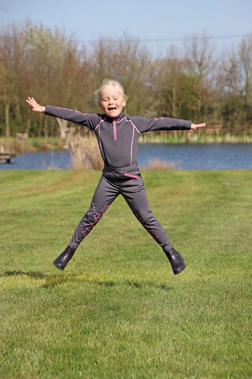 Made with polyester and spandex, these riding tights are the ultimate comfortable attire for your little one whilst riding. The stretch material and supportive stretch waistband enhances fit and ease whilst in the saddle. Silicone stars also feature on the knees to increase grip when riding. The tights have a simple yet stylish design and are finished with a zip pocket on the front. A comfortable choice for your little rider.