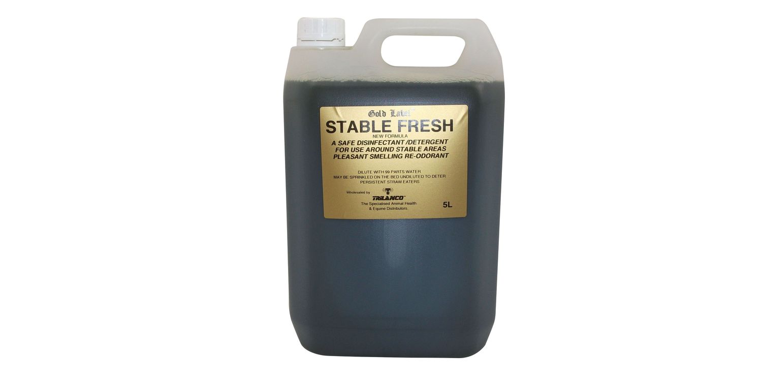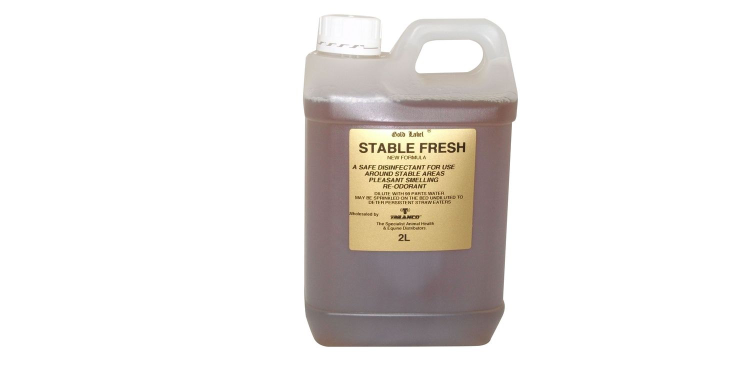 Gold Label Stable Fresh is a safe and pleasantly scented pine disinfectant designed to keep stables and yards clean, fresh, and hygienic. Ideal for everyday use, it helps control odours and promotes a healthier environment for your horses and other animals. It can also be sprinkled undiluted on bedding to discourage straw eating.