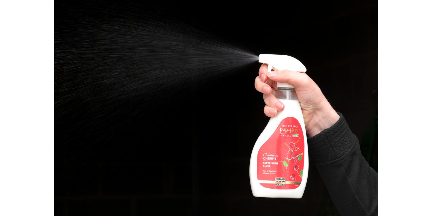 Following the launch of the hugely popular perfect pampering shampoos, this scrumptious cherry-scented spray is the perfect addition to your grooming box. Specially formulated to condition and nourish for a silky, shiny finish, it will leave your horse's horse smelling and looking superb every time! Hydrating ingredients promote healthy hair and skin, making it an everyday essential. It’s non-greasy formula means it will not make their coat tacky, sticky, or slippery. Suitable for all coat colours, simply spray over the coat, mane, and tail, and watch the magic happen!