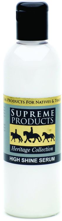 Supreme Products High Shine Serum can be used to add the finishing touches to the coat, quarters and legs before entering the ring. Light in texture, it will repel dust and lay the coat, creating a shiny finish. A non-greasy formula with conditioning properties that will leave the hair feeling silky soft. Can be used on all coats types and is particularly suited to natives and traditionals with coarser hair as it assists in smoothing frizz.