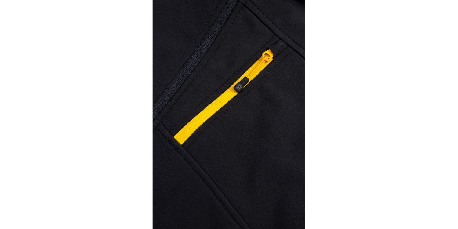 • Contrast yellow chest pocket with logo pull