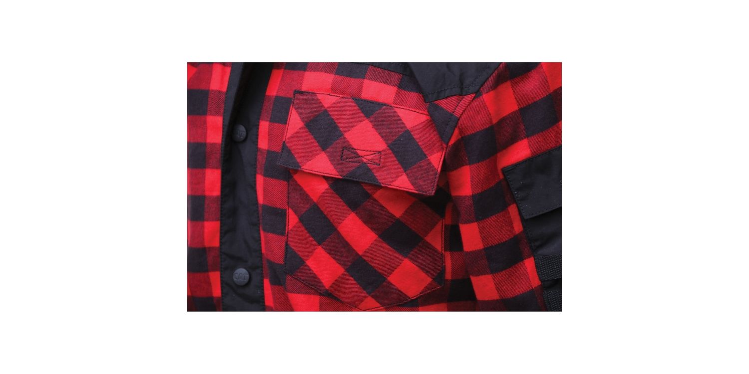 • Contrast nylon overlays at front and back yoke, placket, elbow patches and sleeve pocket for durability