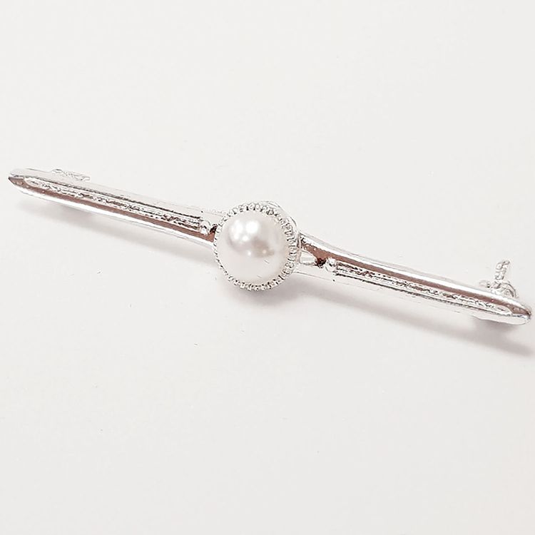 A timeless, single faux pearl pin with safety clasp to back.
