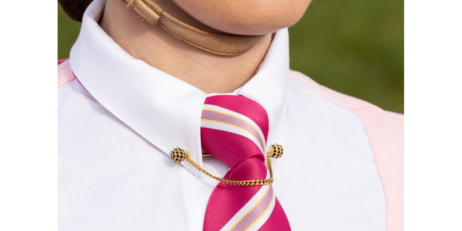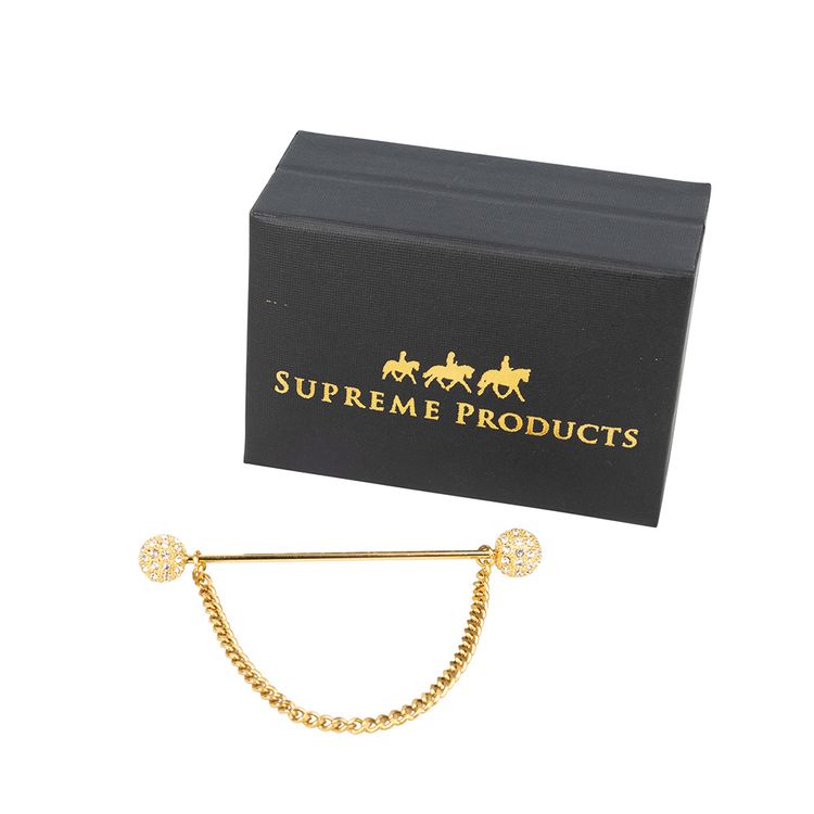 Add a bit of sparkle to show day with the timeless and classic collar pin with chain and diamante-detailed ends. The perfect finishing touch accessory to complete your competition outfit and give it that wow factor.