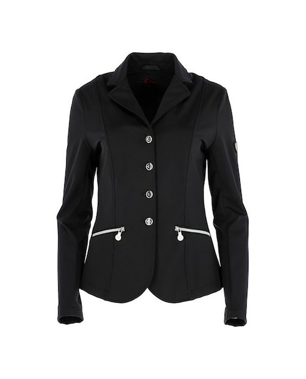 The Samantha show jacket leaves nothing to be desired. This garment boasts countless details, functionality and equestrain expertise. When it comes to freedom of movement and comfort, this jacket stands head and shoulders above the rest. Elastic, durable fabric. Extremely water-resistant material with a 3,000mm water column and breathable. Elegant, short , tailored style with Covalliero buttons and crest. 2 outer pockets with zip fastener, two vents to the back. Easy-to-clean and machine washable at 30 degrees.