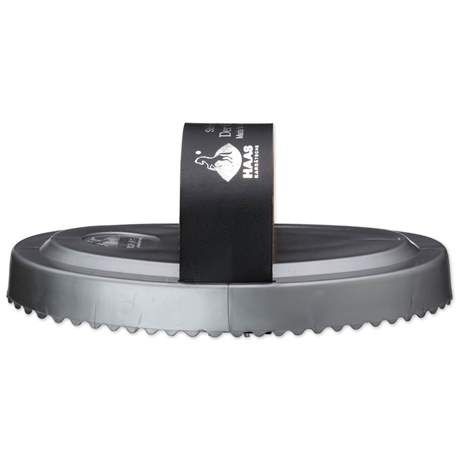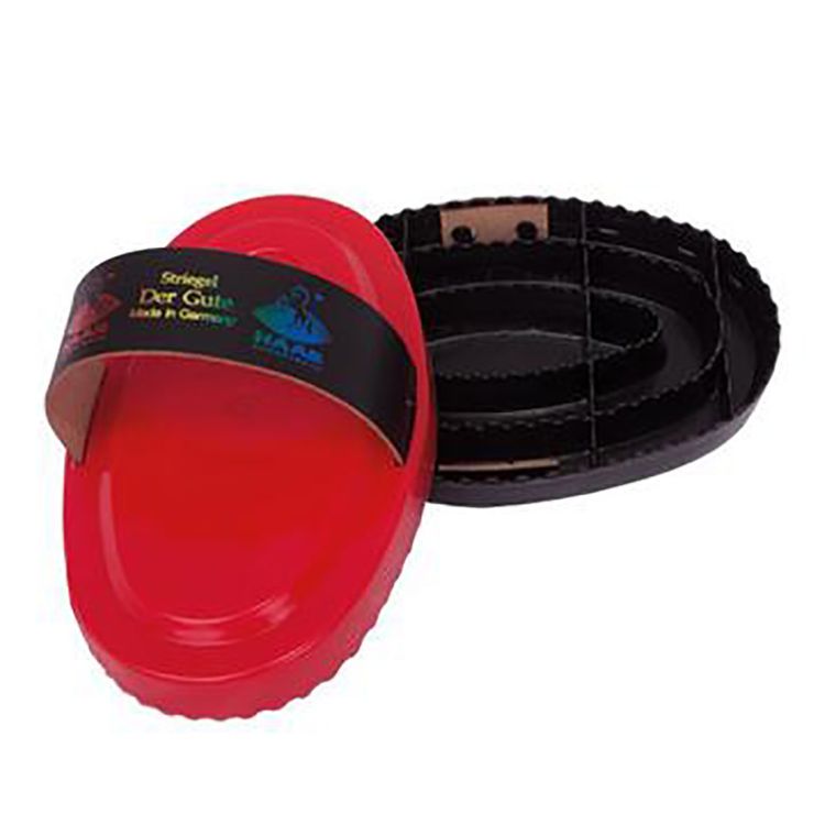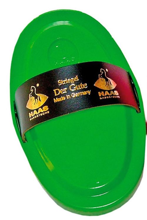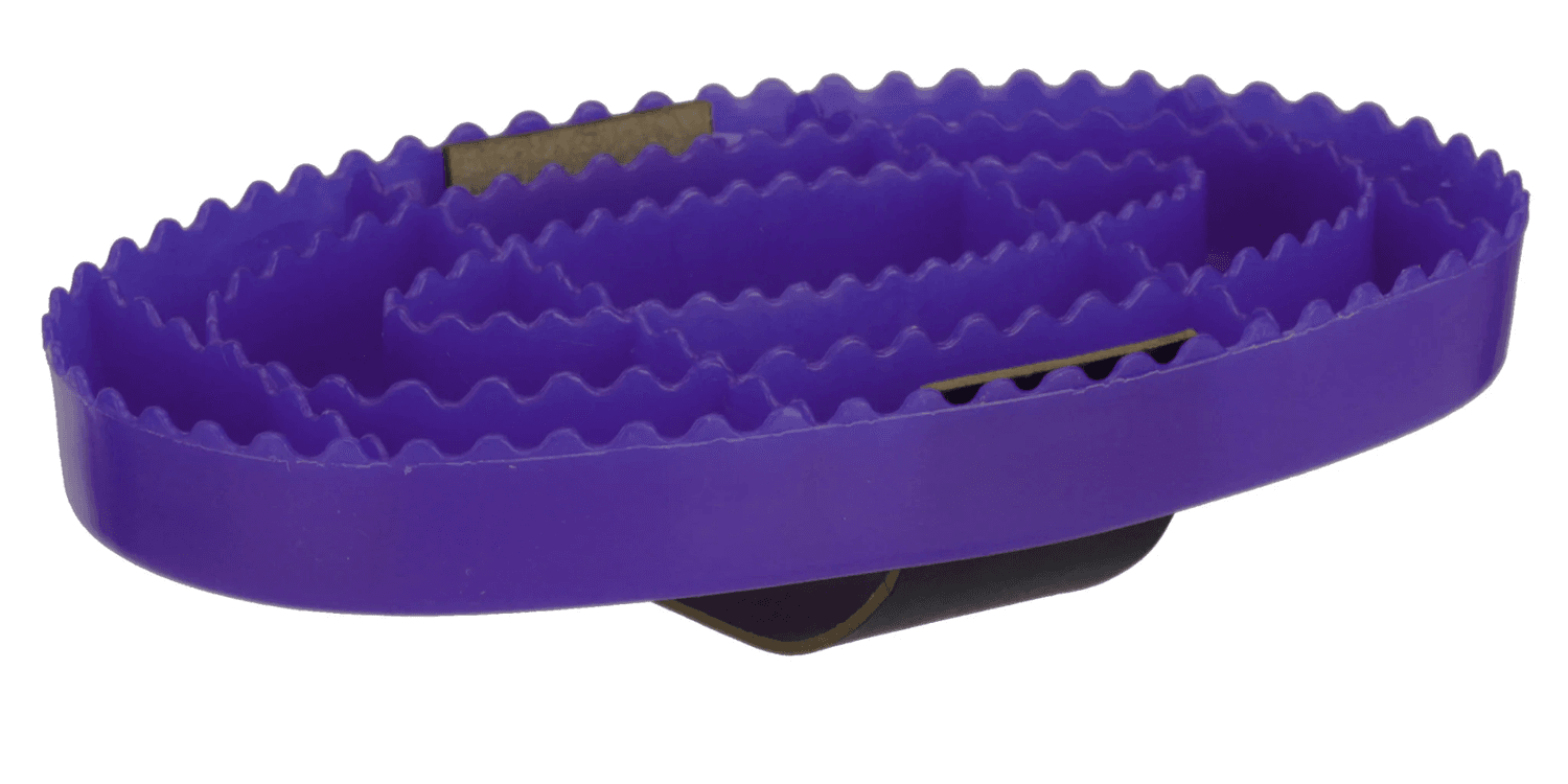 This medium-hard serrated edges of the curry brush are great at loosening and removing dried on mud and dust. Made of a resistant and flexible plastic. The leather fiber fabric hand strap can be replaced at any time.