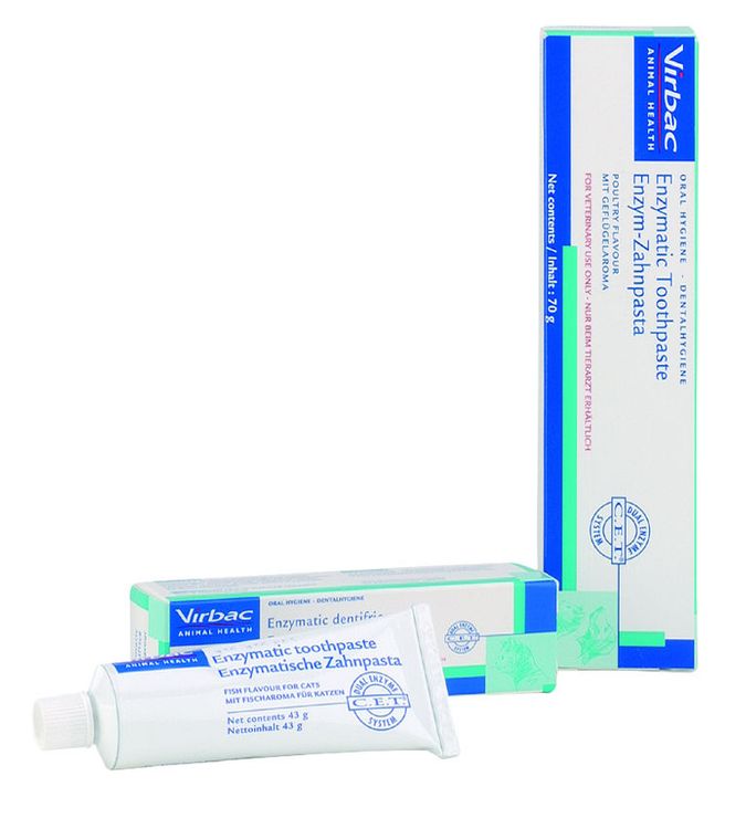 Dual-enzyme formulated poultry flavoured toothpaste for dogs.