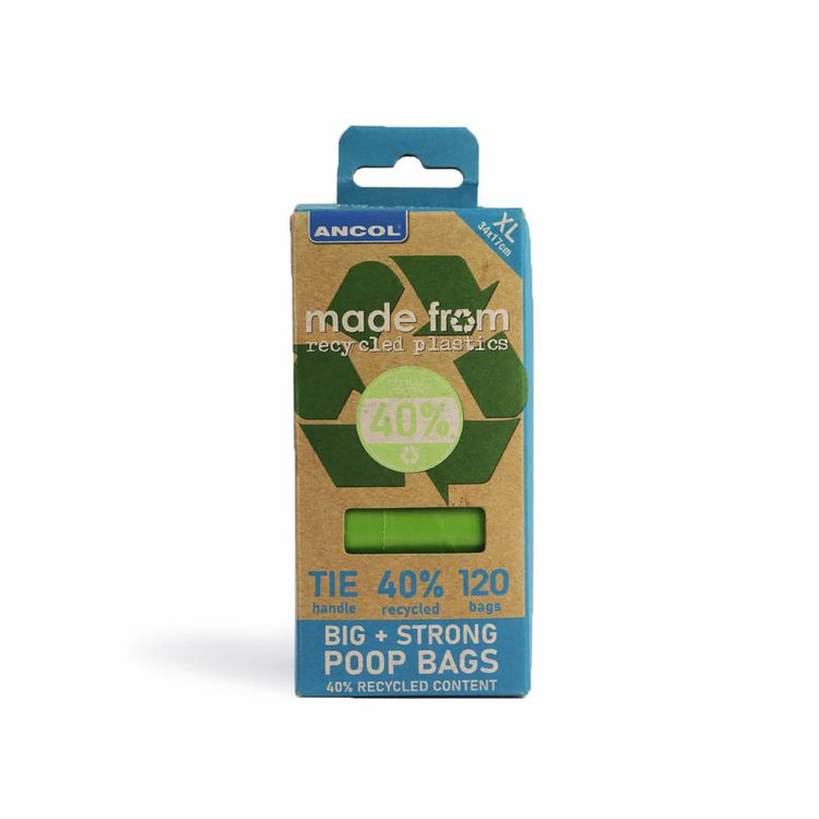 Features 40% recycled content, helping to use up ocean bound plastics. The bags are strong and reliable, with tie handles. With 100% compostable packaging including cardboard inner tube. 60 bags on four rolls.